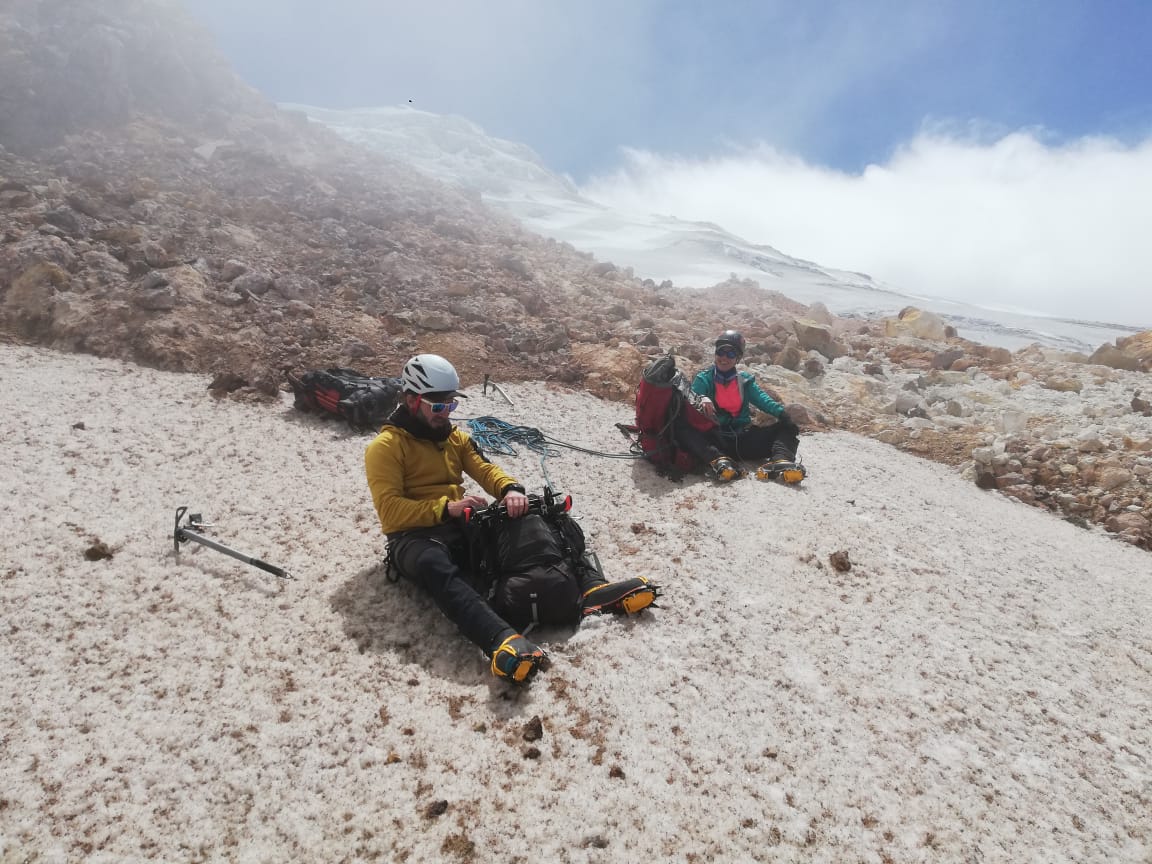 Conditions improved a bit later and the ascent of Cayambe was made in daylight